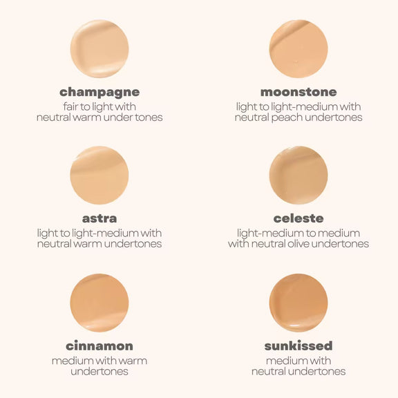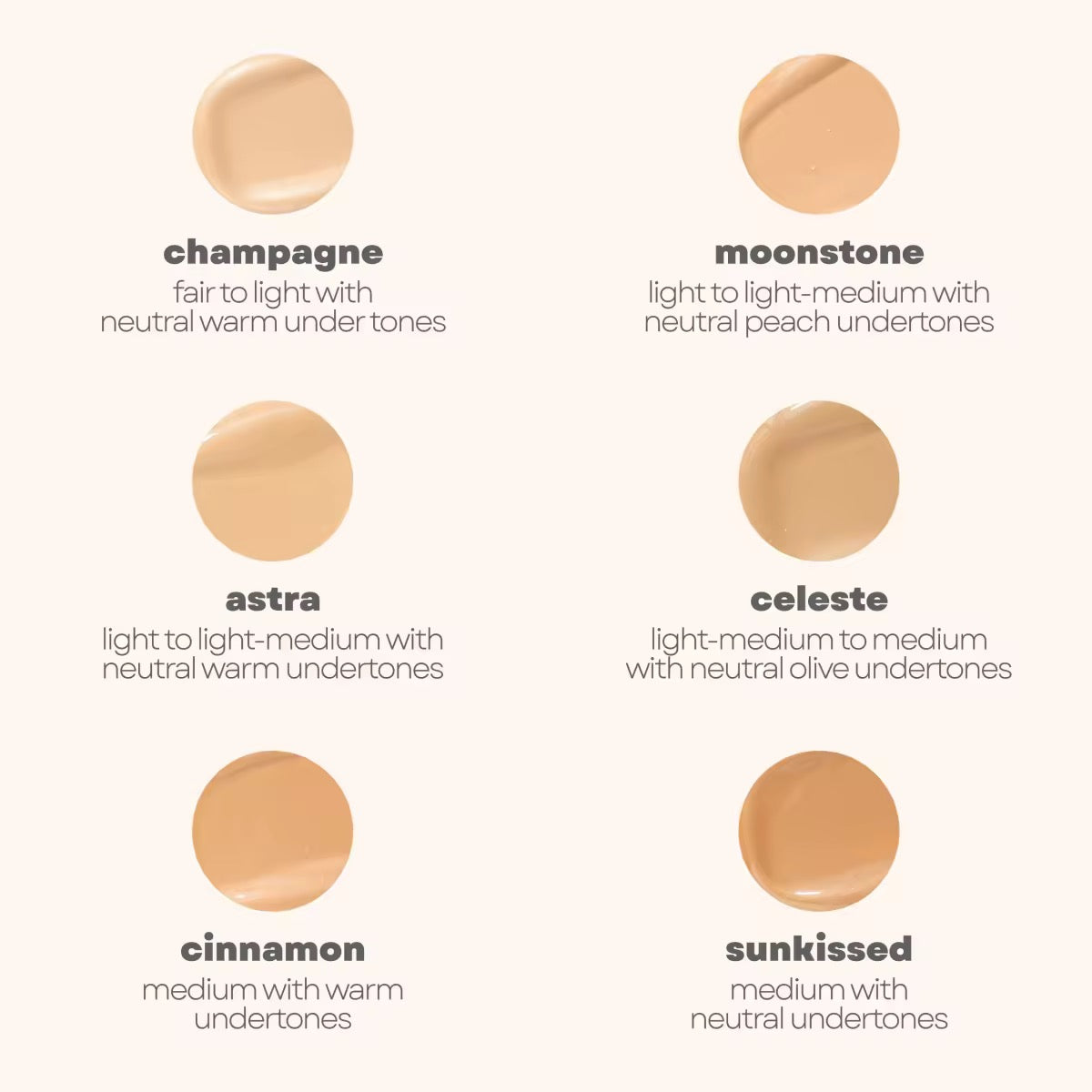 Water; Hydrogenated Didecene; Butylene Glycol; Glycerin; Coco-Caprylate/Caprate; Triethylhexanoin; CI 77163; Phenyl Trimethicone; Lauryl PEG-9 Polydimethylsiloxyethyl Dimethicone; Synthetic Fluorphlogopite; CI 77891; Diethylhexyl Sebacate; Ethylhexyl Hydroxystearate; Hydrogenated Styrene/Isoprene Copolymer; Sorbitan Isostearate; Sodium Chloride; Disteardimonium Hectorite; VP/Hexadecene Copolymer; Phenoxyethanol; CI 77492; Propylene Carbonate; Glyceryl Behenate; Caprylyl Glycol; Ethylhexylglycerin; CI 77491; Disodium EDTA; Tocopheryl Acetate; CI 77499; Aluminum Hydroxide; Tin Oxide; Triethoxycaprylylsilane; Niacinamide; C12-15 Alkyl Benzoate; Pentaerythrityl Tetra-di-t-Butyl Hydroxyhydrocinnamate; Ubiquinone (CoQ10); Tocopherol (Vitamin E); Camellia Sinensis (Green Tea) Leaf Extract