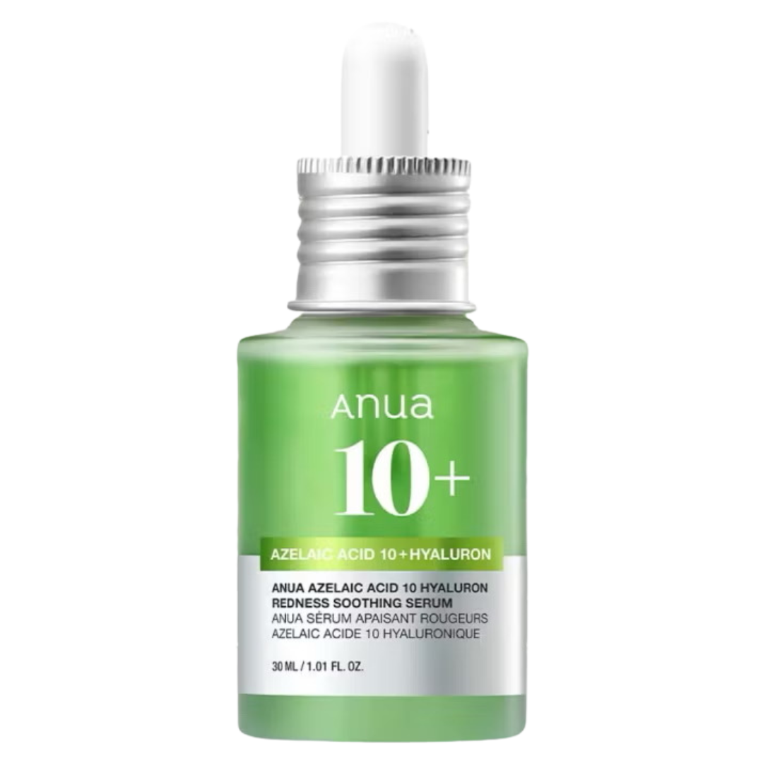Lightweight soothing serum with 10% Azelaic Acid, niacinamide, and Anua Gentle Calming Complex™ to calm acne, rosacea, and redness while fading hyperpigmentation. Enriched with hyaluronic acid for long-lasting hydration and natural extracts like aloe, centella, blue tansy, and green tea for added soothing benefits. The serum’s green hue comes naturally from its plant-based ingredients. Clinically tested to reduce redness caused by dryness.