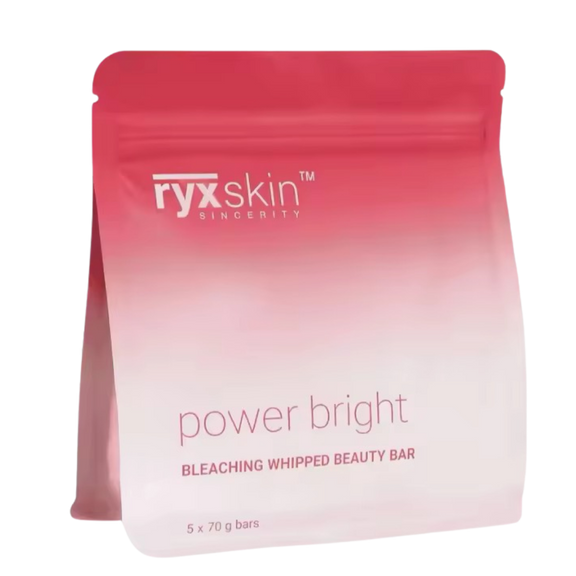 The RYX Skin Power Bright Bleaching Whipped Beauty Bar (5 x 70g) is a brightening cleanser designed to target dark spots, uneven skin tone, and acne marks. This bundle contains five 70g bars, making it suitable for consistent use on both the face and body.