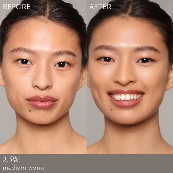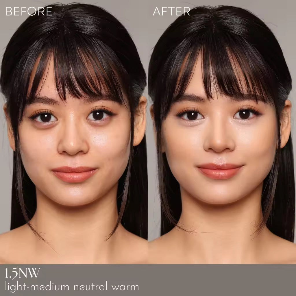 Start with clean, moisturized skin (and SPF during the day). Apply a small amount of the Weightless Touch Foundation using your fingers, a damp sponge, or a brush. Blend it evenly over the face, starting from the center and working outward. For more coverage, add a second thin layer β the formula is buildable, so you can keep it light or make it medium coverage without it feeling heavy. Set with powder if you prefer a more matte or long-lasting finish.