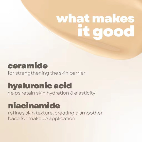 Absidyβs Weightless Touch Foundation is a lightweight, oil-free liquid foundation that melts seamlessly into the skin and sets into a soft-matte, true-to-shade finish. With buildable medium coverage, it evens out imperfections like pores, redness, and blemishes without feeling heavy. Infused with niacinamide, hyaluronic acid, and ceramide, it also helps hydrate the skin and support its barrier.
